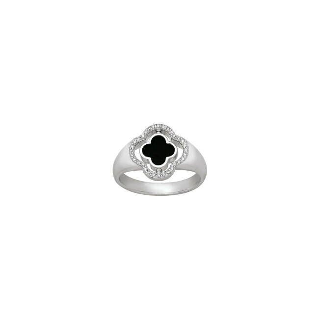 Bague réversible Charles Garnier en argent, oxyde de zirconium, nacre et onyx