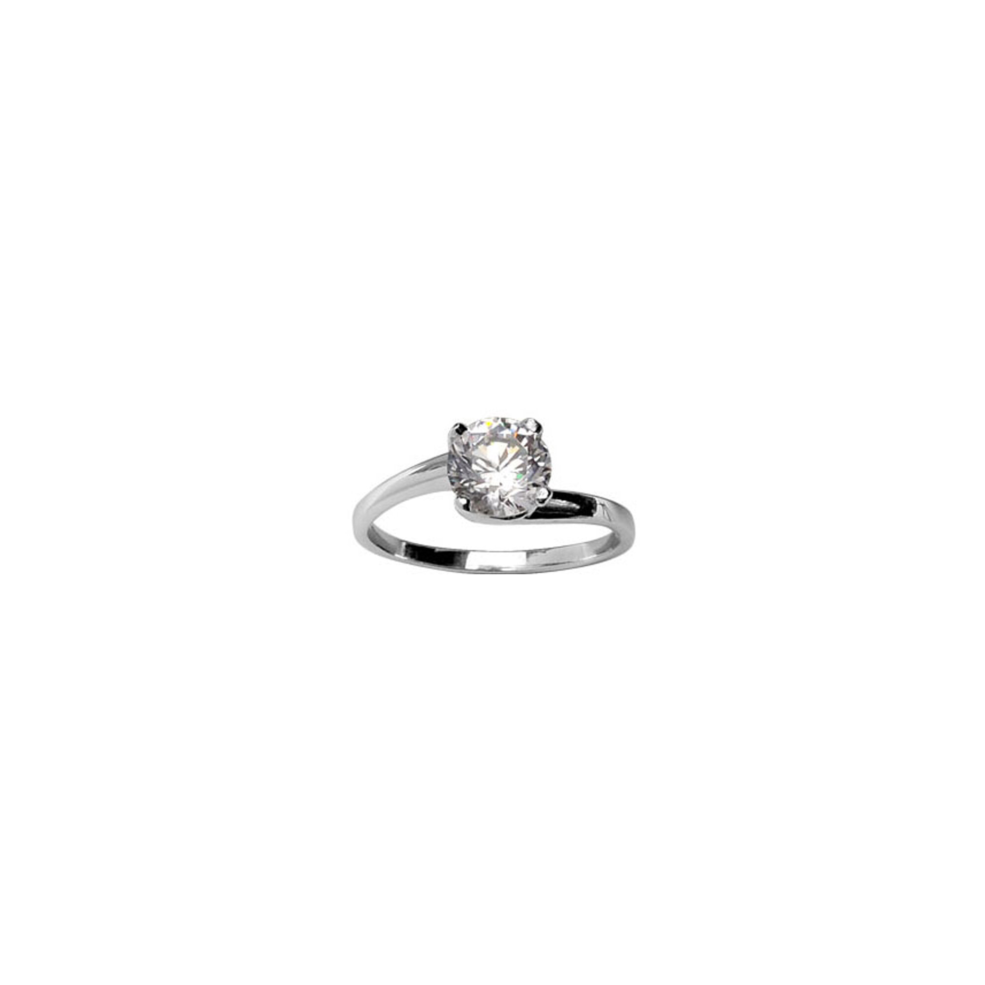 Bague solitaire 4 griffes en argent rhodié et oxyde de zirconium, taille 52