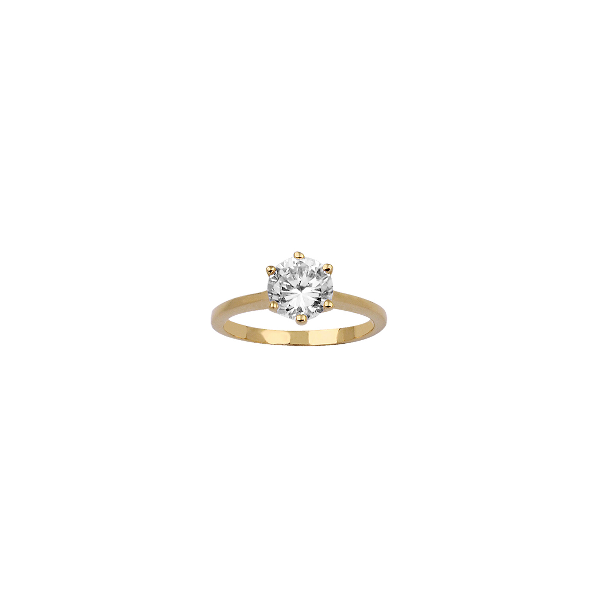 Bague solitaire 6 griffes en plaqué or et oxyde de zirconium, taille 52