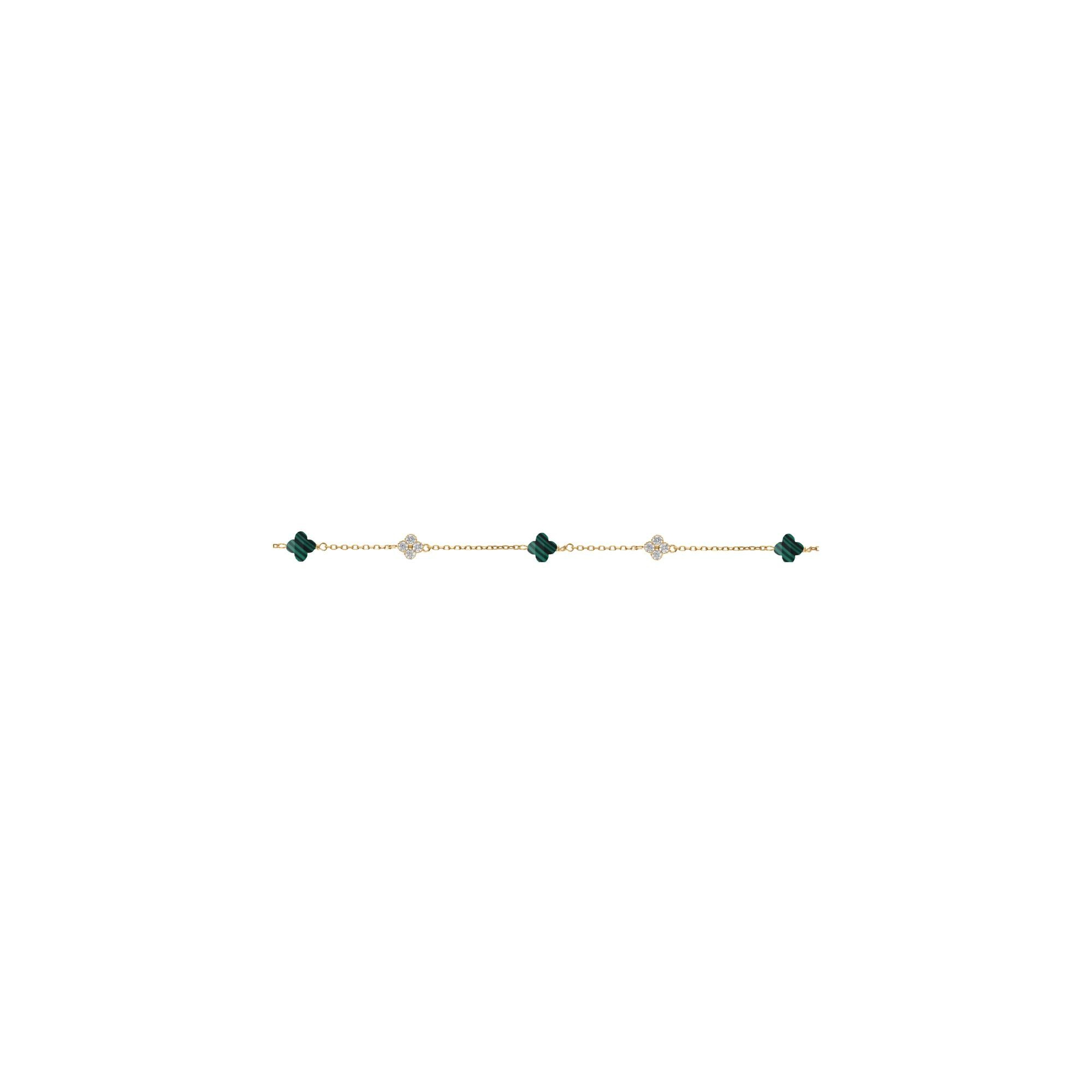 Bracelet argent doré trèfle en verre vert malachite imitation et pastille oxydes blancs 15.5+2.5cm